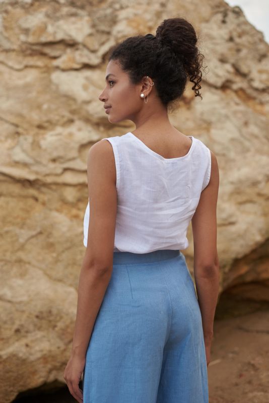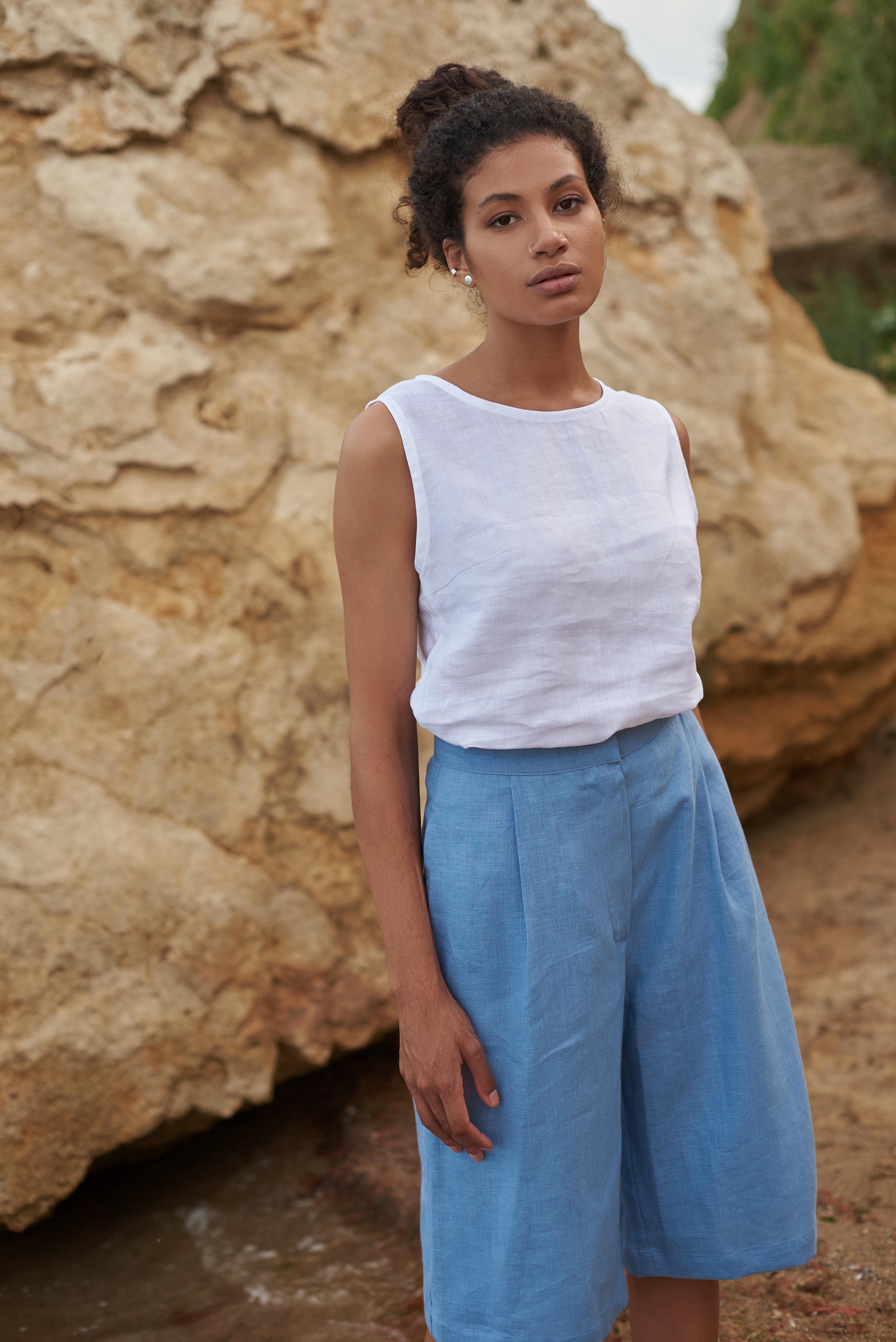 Базовий лляний топ - найлегша річ у літню спеку. Універсальний, стриманий фасон, який легко вписується в будь-який образ